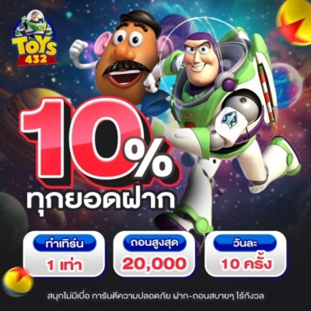 เรายังมีโปรโมชั่นพิเศษสำหรับการฝากเงินครั้งแรก และโบนัสเพิ่มเติมสำหรับการฝากในครั้งต่อ ๆ ไป ทำให้คุณได้รับประสบการณ์การเล่นที่คุ้มค่ามากยิ่งขึ้น toys432 มุ่งมั่นที่จะพัฒนาระบบและการบริการอย่างต่อเนื่อง เพื่อให้สมาชิกทุกคนได้รับความสะดวกสบายและความพึงพอใจสูงสุด